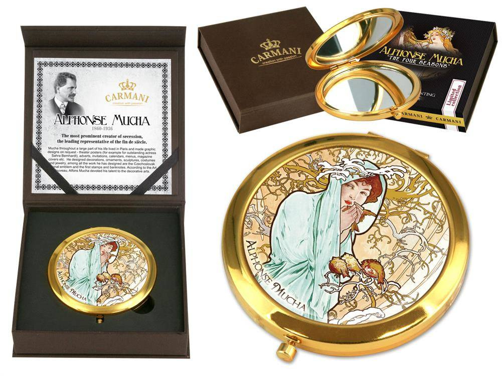 Urocze, małe lustereczko z motywem twórczości Amedea Modiglianiego. Doskonałe do każdej kobiecej torebki. Zajmuje mało miejsca a jego piękne zdobienia dodają uroku.
