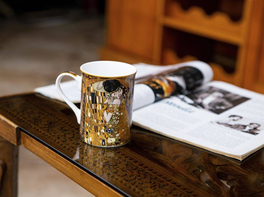 Elegancki kubek, przedstawiający twórczość znanego malarza Gustava Klimta.
