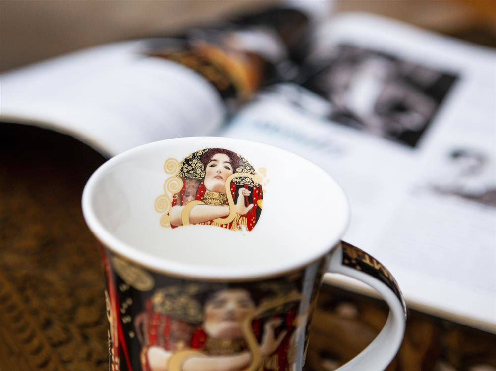 Elegancki kubek, przedstawiający twórczość znanego malarza Gustava Klimta.