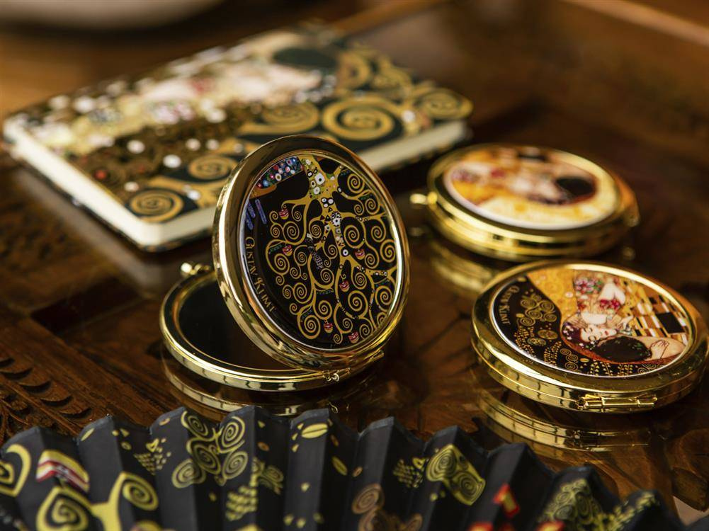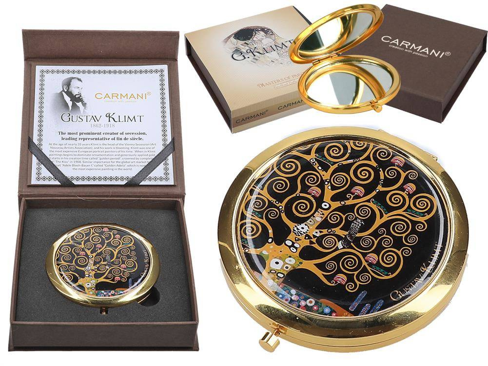 Urocze, małe lustereczko z motywem twórczości Gustava Klimta. Doskonałe do każdej kobiecej torebki. Zajmuje mało miejsca a jego piękne zdobienia dodają uroku.