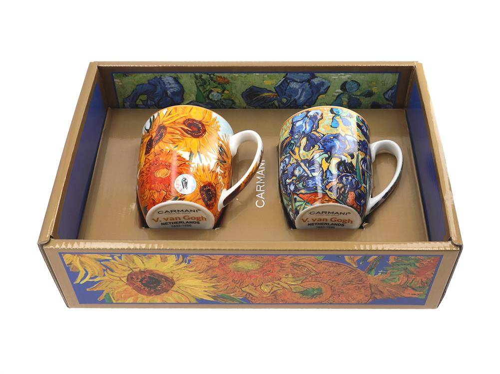 Zestaw dwóch eleganckich kubków z motywem twórczości Vincenta van Gogha. Zapakowane w nietypowe opakowanie, świetnie nadaje się na prezent.
