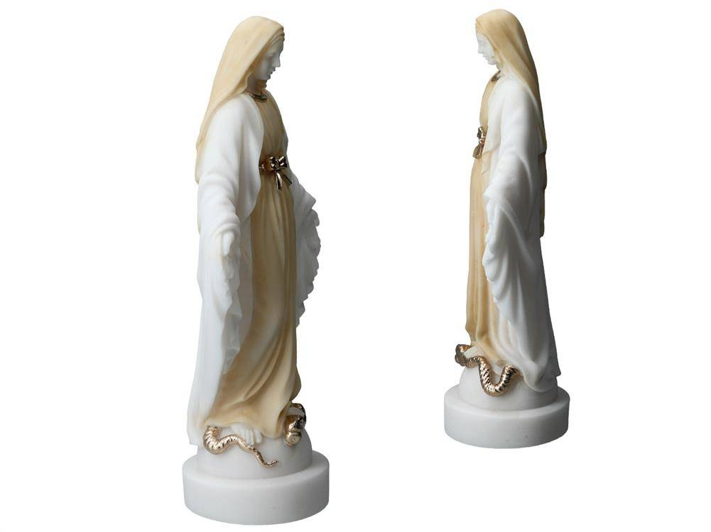 Alabastrowe popiersie Matki Boskiej Niepokalanej. Od czasów starożytnych alabaster był wysoko cenionym kamieniem ozdobnym i dekoracyjnym. Niezliczona ilość wzorów stanowi inspirację do tworzenia własnych niepowtarzalnych zbiorów. Każda statuetka