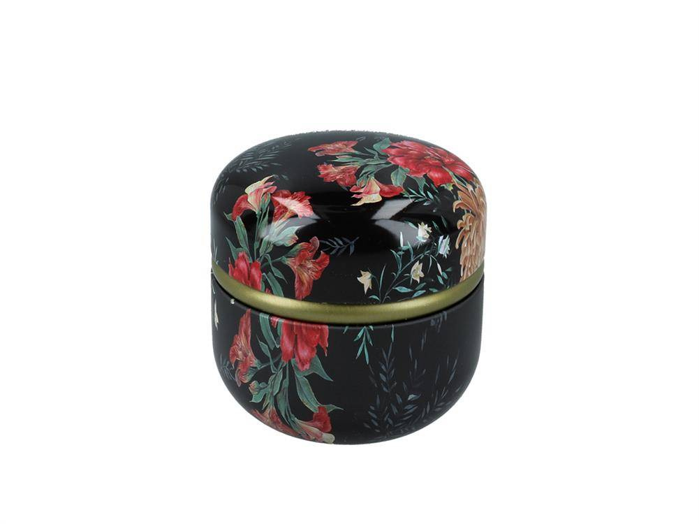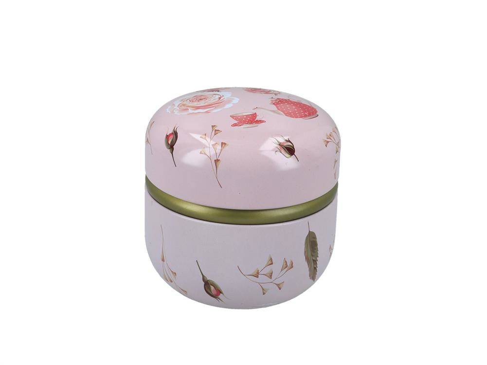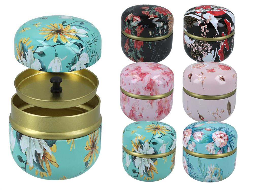 Niewielka puszka z uroczą, kwiatową dekoracją. Posiada dodatkowe zamknięcie, które skutecznie uniemożliwia ulatnianie się aromatu kawy czy herbaty.