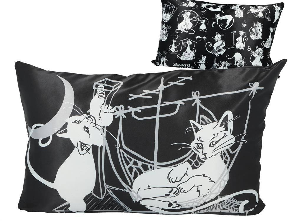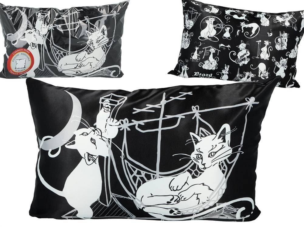 Poduszka z wypełnieniem/suwak (duża) - Koci świat, Impreza na dachu (czarne tło) (CARMANI)