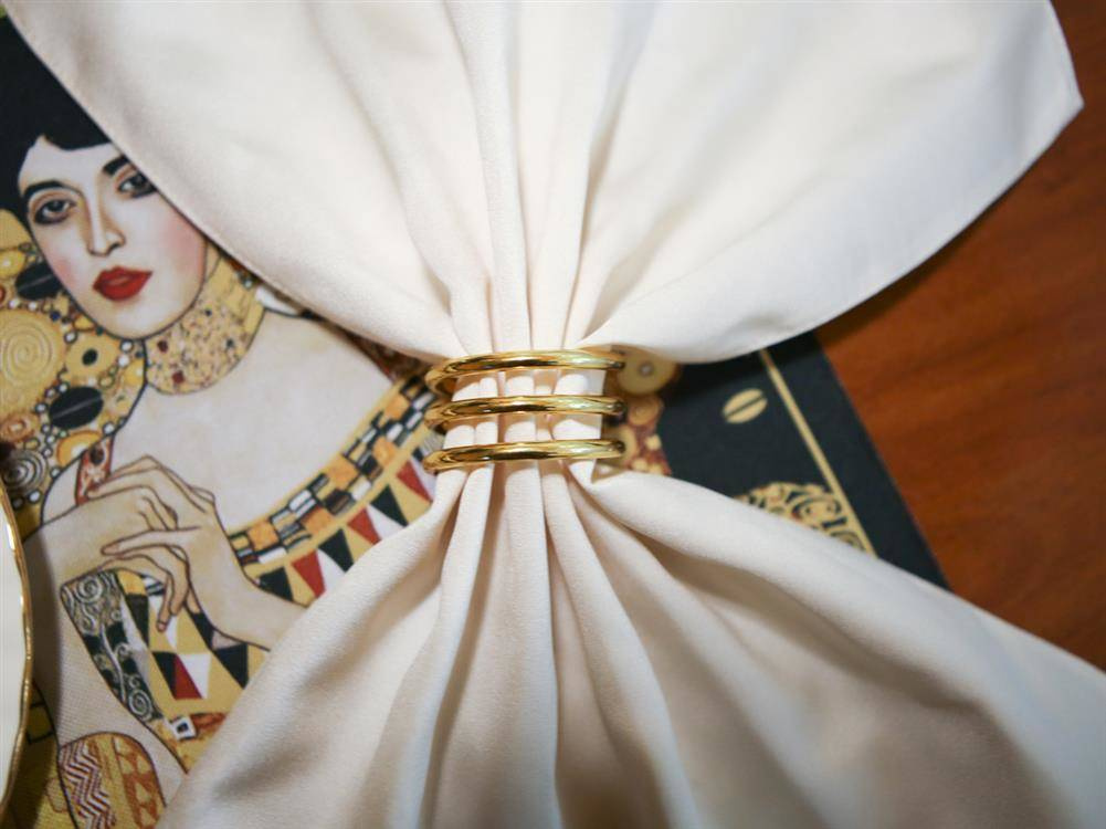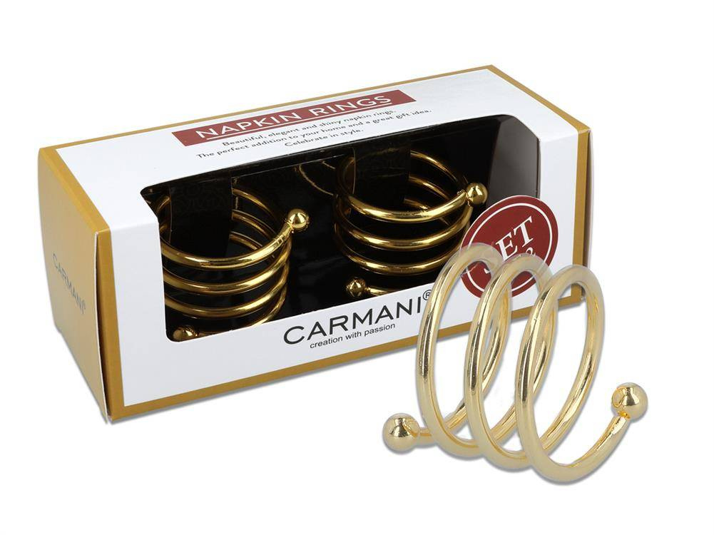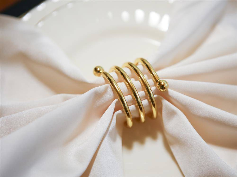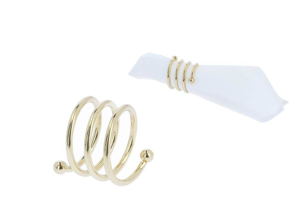 Wyjątkowa dekoracja na świąteczny stół. Eleganckie pierścienie na serwetki, w formie ozdobnych złotych sprężynek.