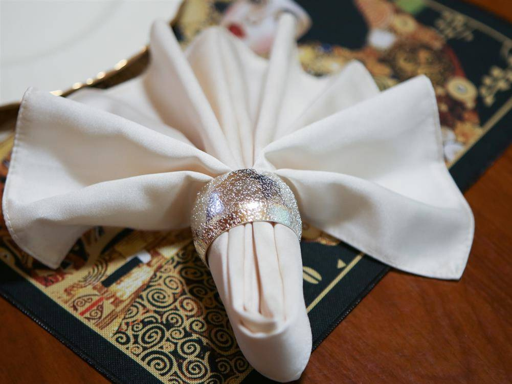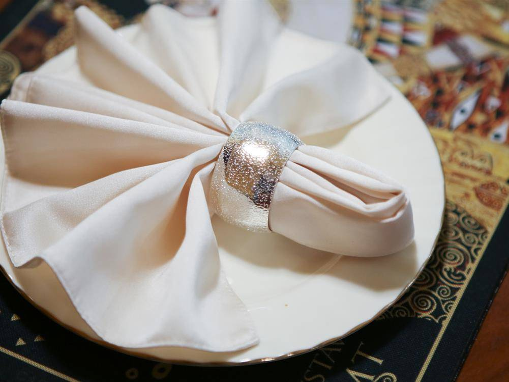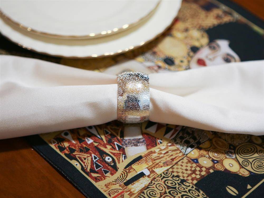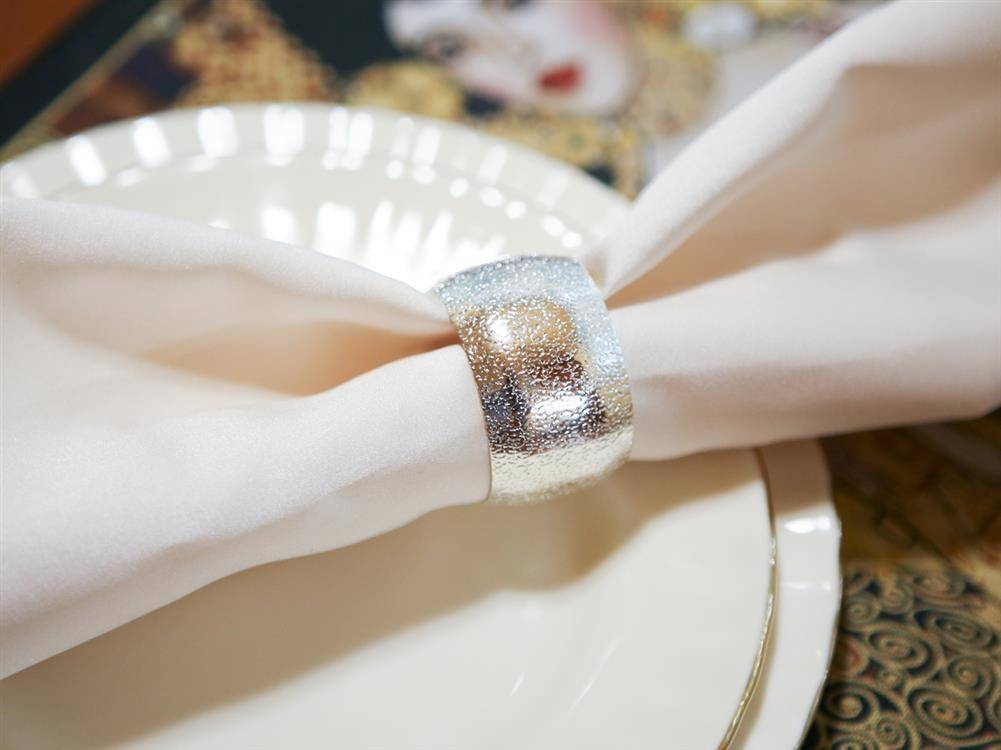 Wyjątkowa dekoracja na świąteczny stół. Eleganckie pierścienie na serwetki, w formie szerokiej srebrnej obrączki.