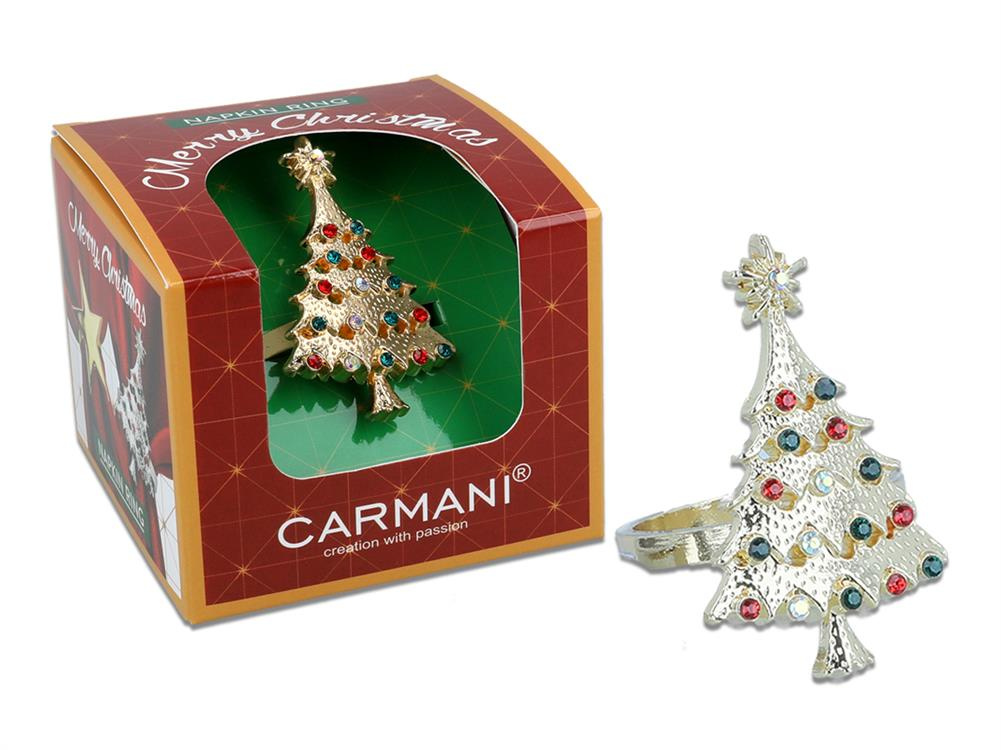 Wyjątkowa dekoracja na świąteczny stół. Eleganckie pierścienie na serwetki, z ozdobą złotej choinki.
