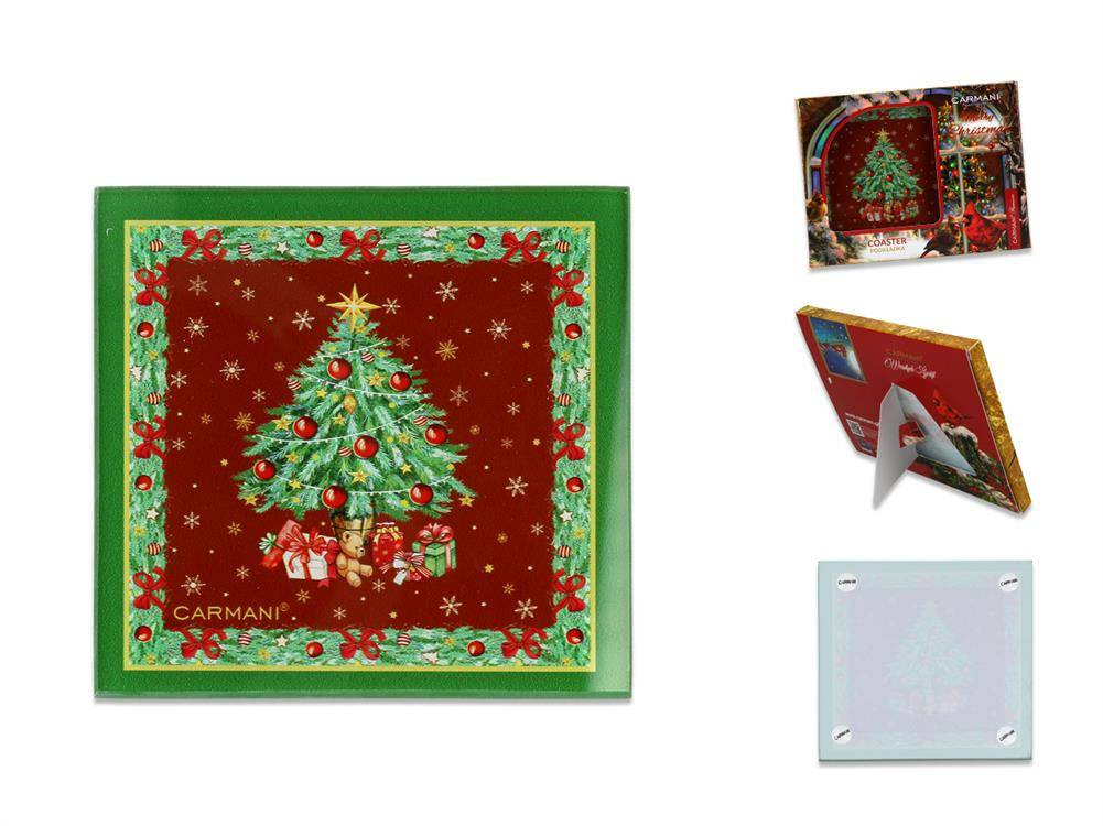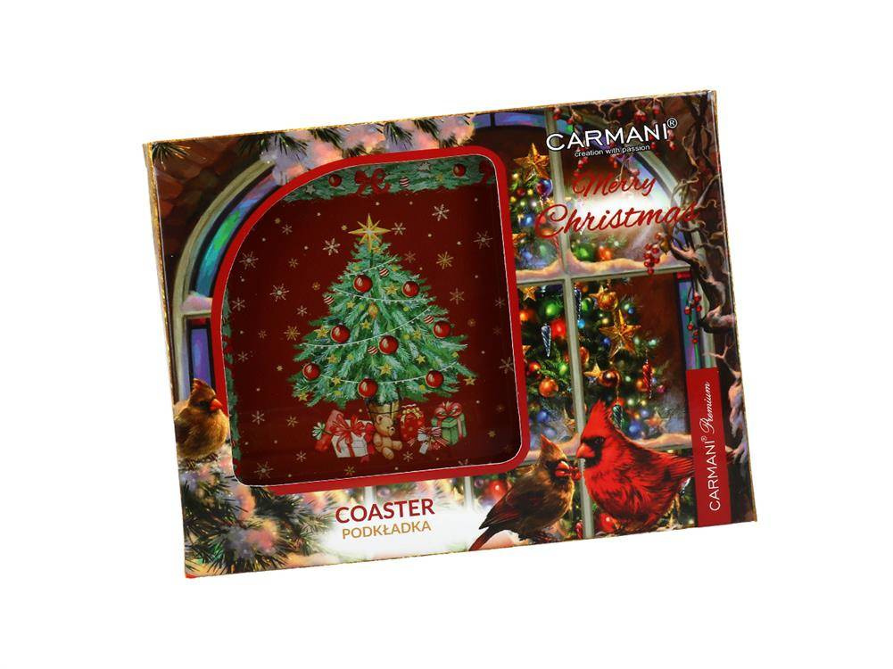 Gustowna, kwadratowa podkładka pod kubek z motywem świątecznym doskonale uzupełni każdą świąteczną stylizację stołu.