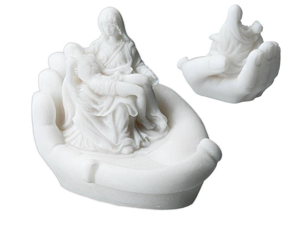Alabastrowa figurka przedstawiająca Maryję trzymającą w ramionach zdjętego z krzyża Jezusa. Całość została osadzona w dłoni. Od czasów starożytnych alabaster był wysoko cenionym kamieniem ozdobnym i dekoracyjnym. Niezliczona ilość wzorów stanowi
