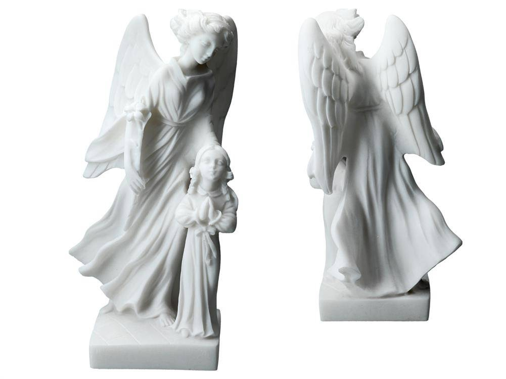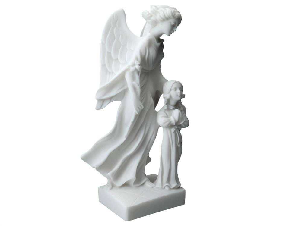 Alabastrowa figurka przedstawiająca Anioła Stróża . Już od czasów starożytnych alabaster był wysoko cenionym kamieniem ozdobnym i dekoracyjnym. Niezliczona ilość wzorów stanowi inspirację do tworzenia własnych niepowtarzalnych zbiorów