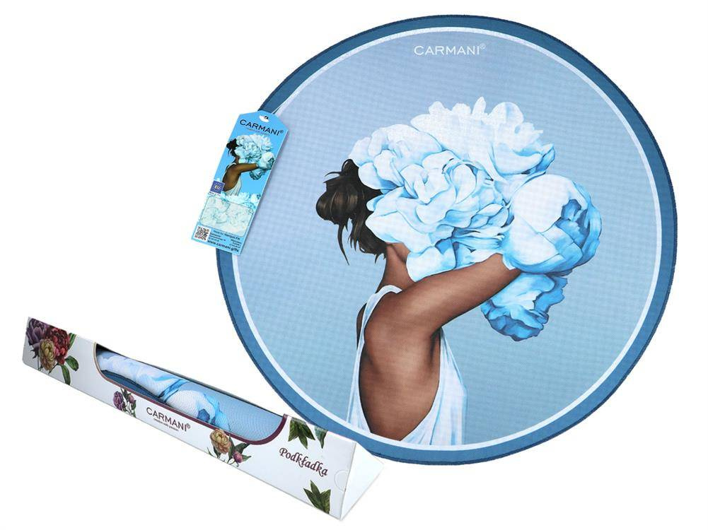 Podkładka na stół okrągła - Kwiaty na głowie, błękit (CARMANI)