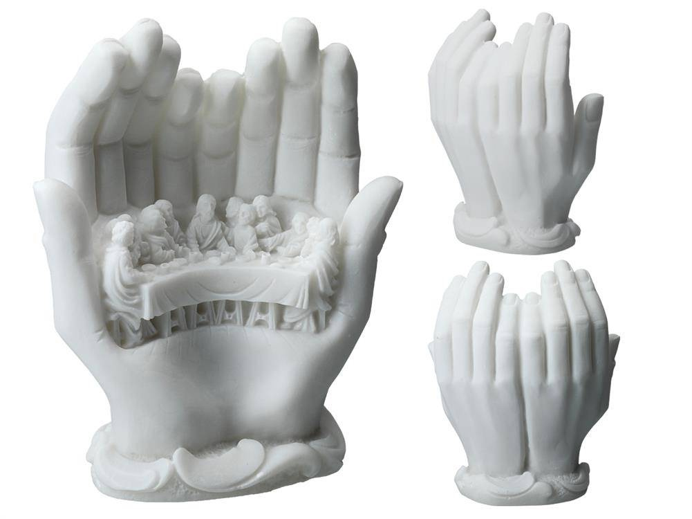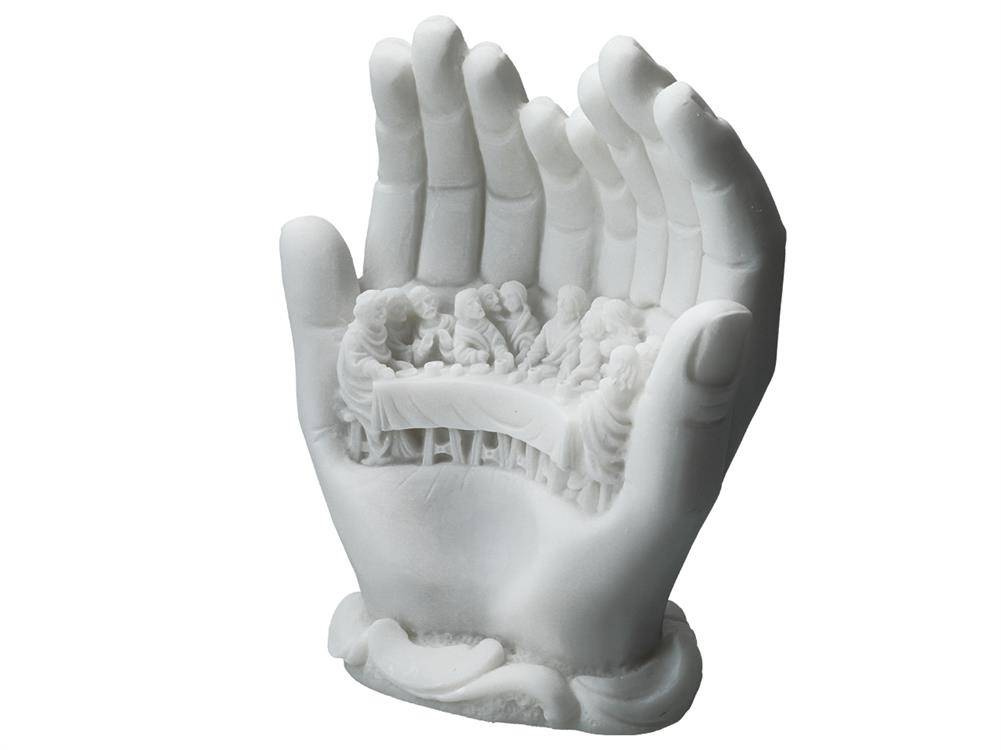 Alabastrowa figurka przedstawiająca ostatnią wieczerzę. Całość została osadzona w dłoniach. Od czasów starożytnych alabaster był wysoko cenionym kamieniem ozdobnym i dekoracyjnym. Niezliczona ilość wzorów stanowi inspirację do