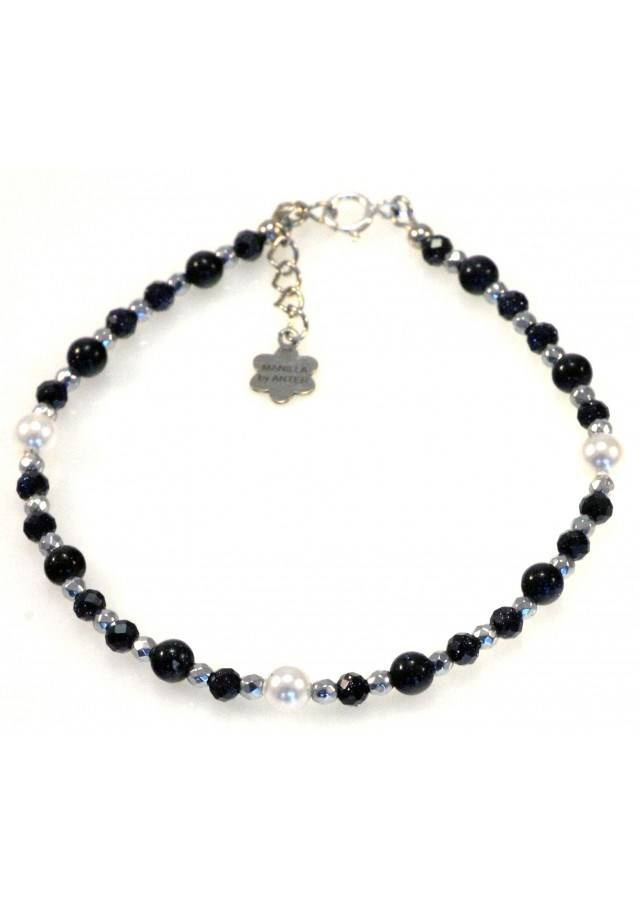 Kamień: Noc Kairu, Perła Rozmiar kamienia: 2mm / 3mm Długość: 17,5 cm + przedłużka do 19,5 cm Zapięcie: klasyczne (federing) Biżuteria ręcznie wykonana, produkt Polski.