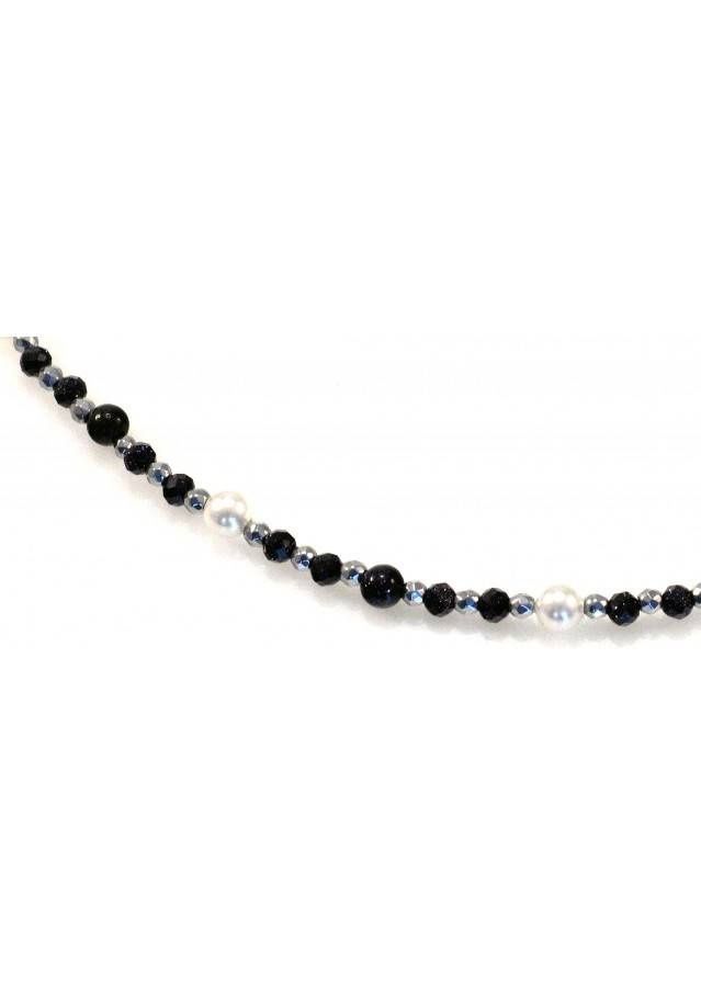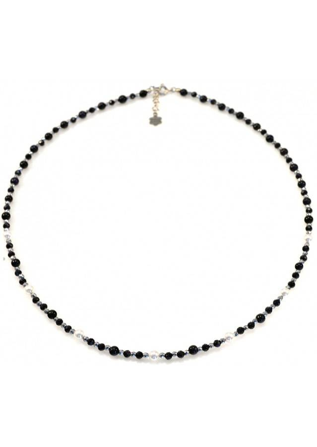 Naszyjnik wykonana ze srebra próby 925, platynowana. Kamień: Noc Kairu, Perła i Hematyt Rozmiar kamienia: 2mm / 3mm Długość: 44 cm Długości do wyboru: 38 cm /42 cm/ 44 cm Zapięcie: klasyczne (federing) Biżuteria ręcznie wykonana, produkt Polski.
