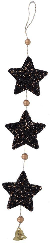 Sznur świąteczny z gwiazdkami i dzwoneczkiem czarny