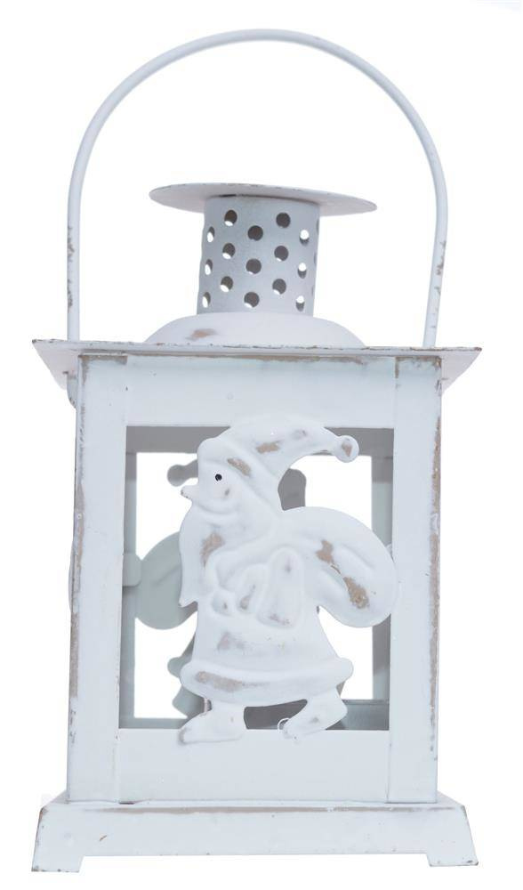 Latarnia metalowa biała z mikołajem mała