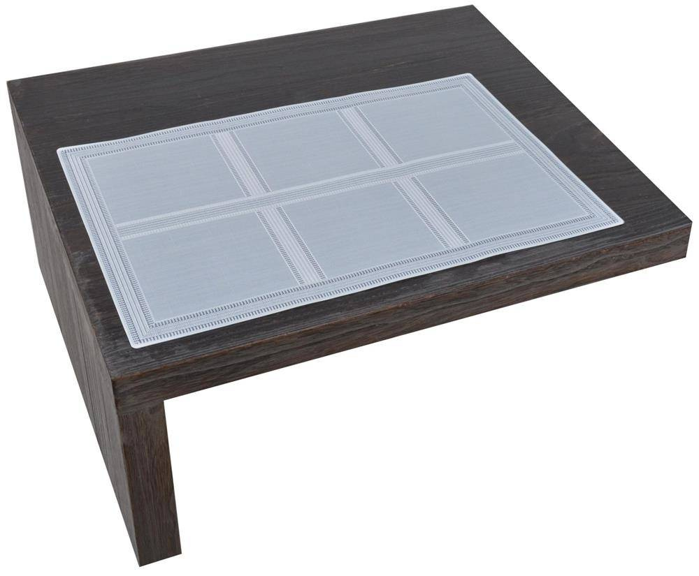 Komplet sześciu białych podkładek imitujących serwety. Tworzywo sztuczne. Wymiary: 30x45cm.