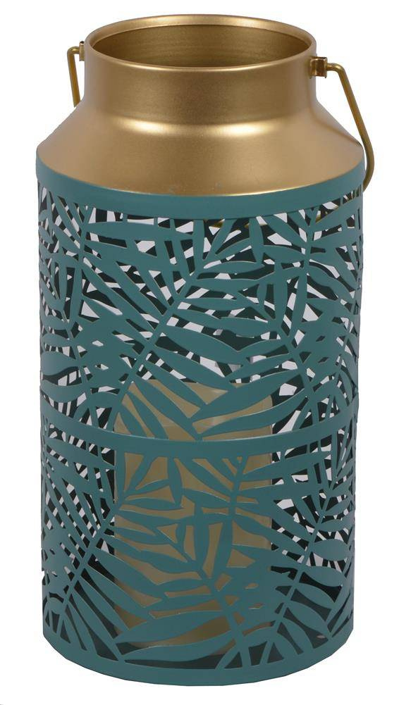 Lampion zielony w ażurowe liście ze świecą led duży 15,2x29cm