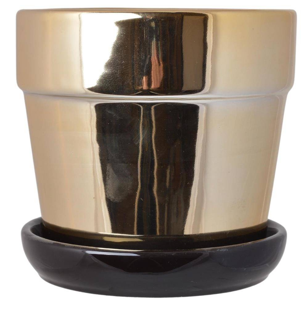 Doniczka ceramiczna złota z czarną podstawką duża