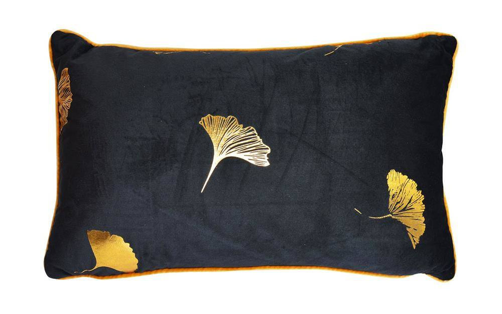 Poduszka welurowa prostokątna czarna ze złotymi liśćmi