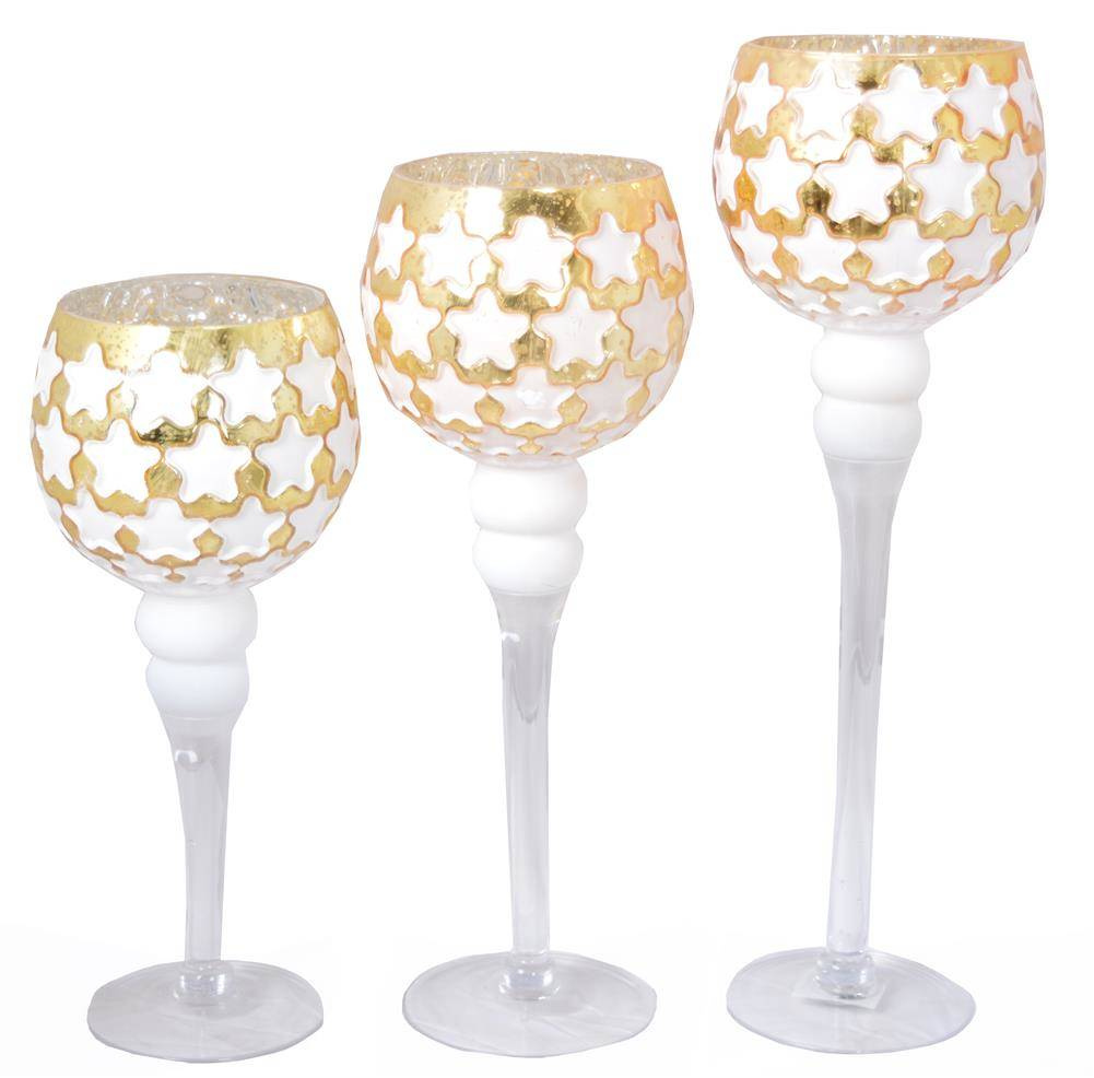 Kpl.3 kielichów biało-złotych w gwiazdki