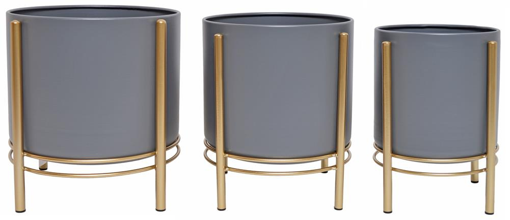 Kpl. 3 kwietników metalowych szarych na złotym stelażu