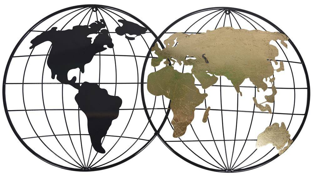 Dekoracja ścienna metalowa kula ziemska złoto-czarna