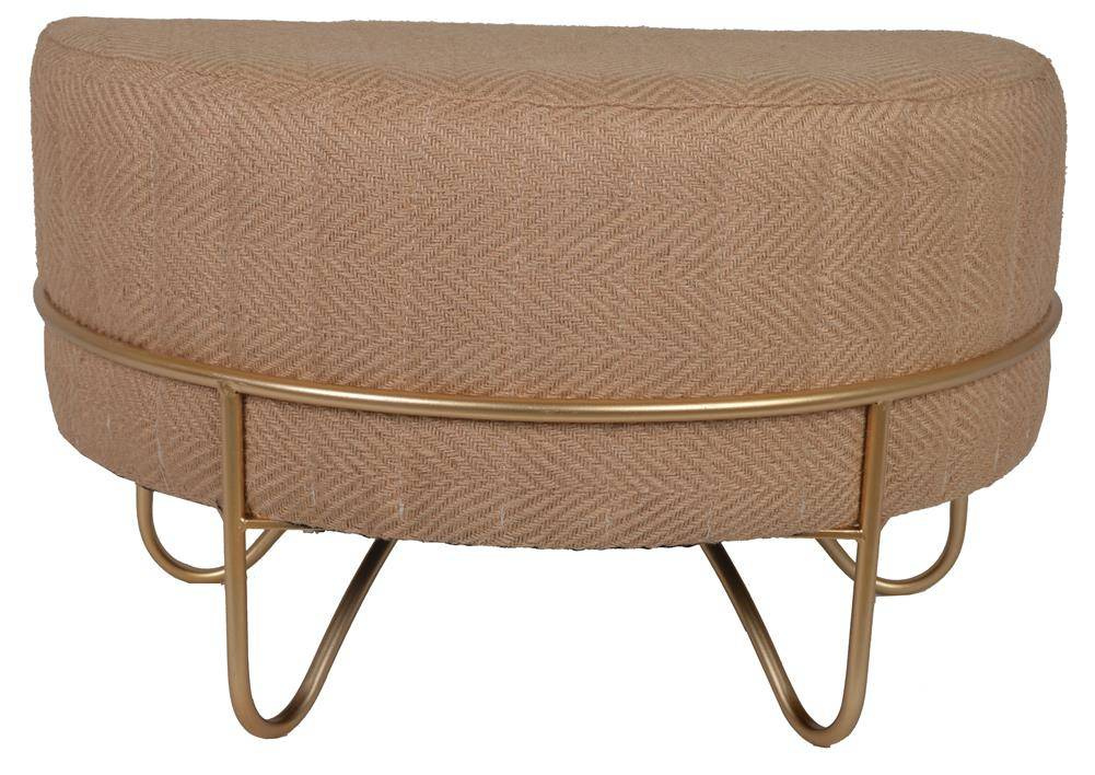 Puf półokrągły lniany na złotym stelażu