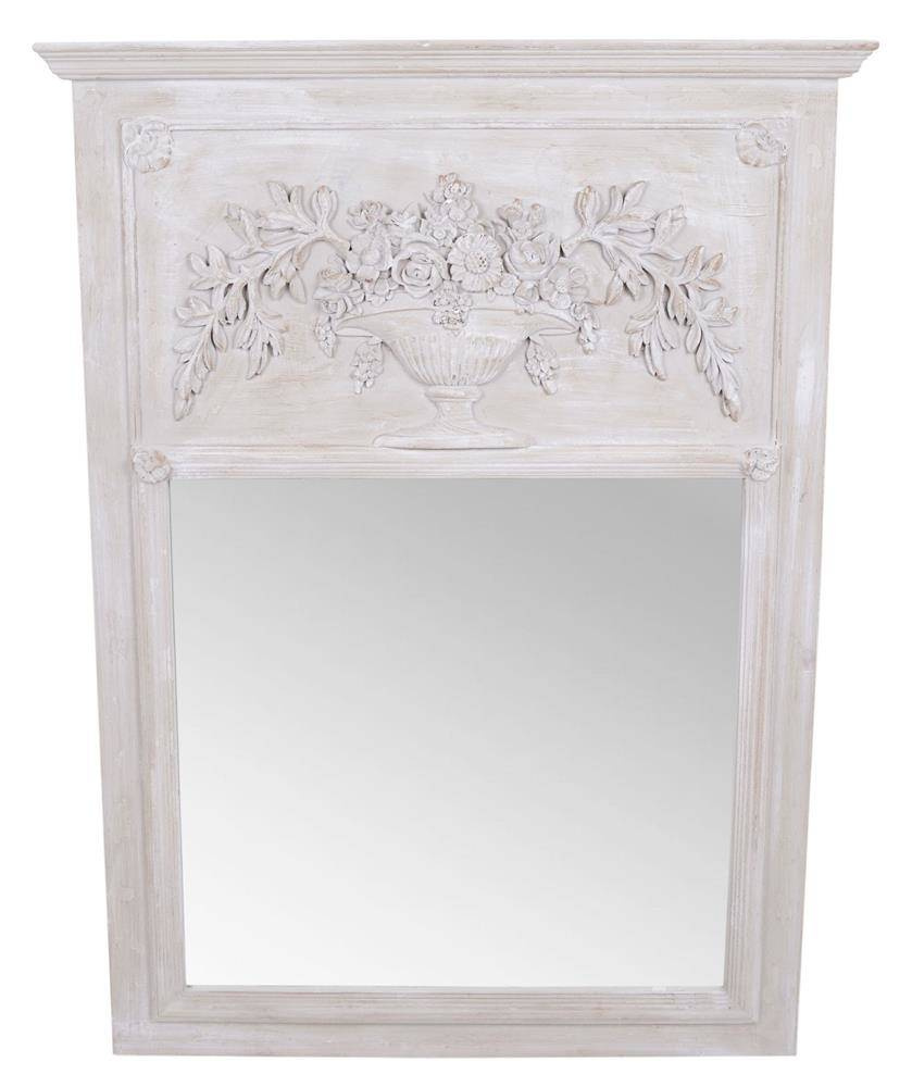 Lustro w przecieranej ramie ze zdobieniem-kwiaty w wazonie