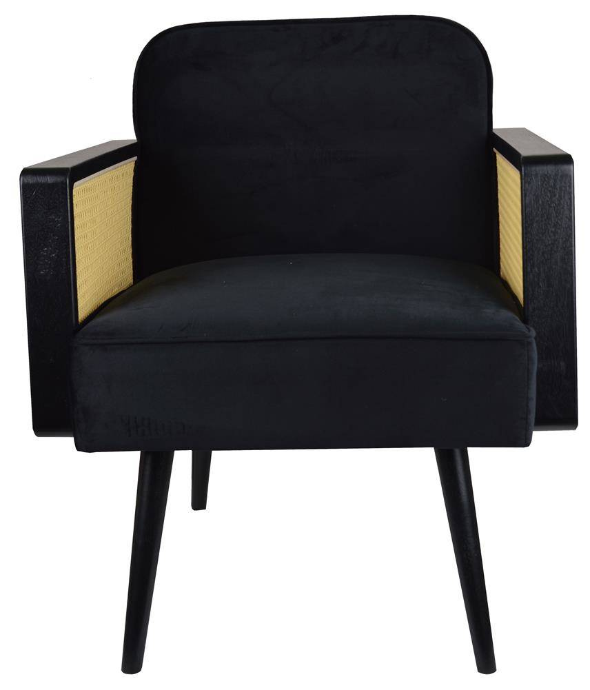 Fotel welurowy czarny z ażurowymi podłokietnikami