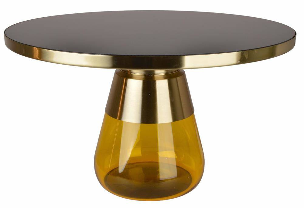 Stolik kawowy metalowy z żółtym szkłem duży