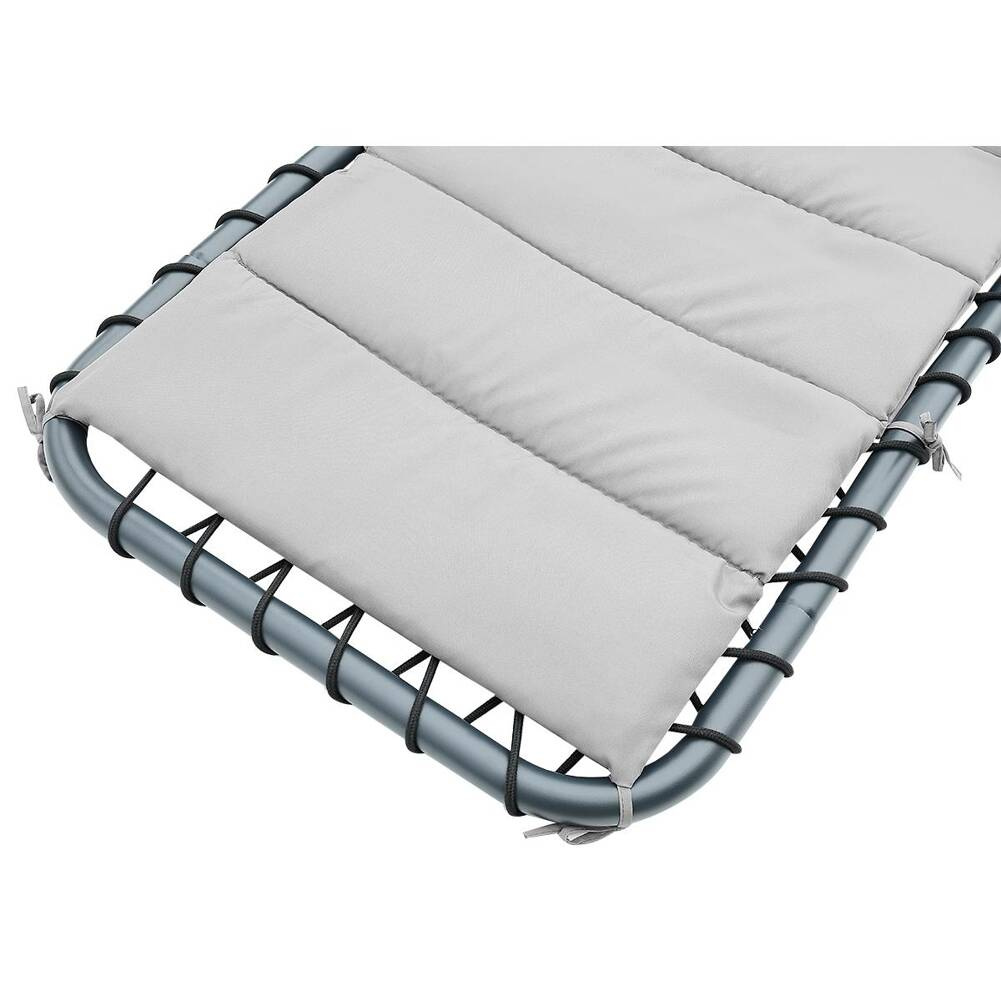 • Materiały: stal malowana proszkowo, pokrycie materaca - poliester 180 g/m2, poduszka - poliester 160 g z wypełnieniem, textilene 2x1