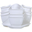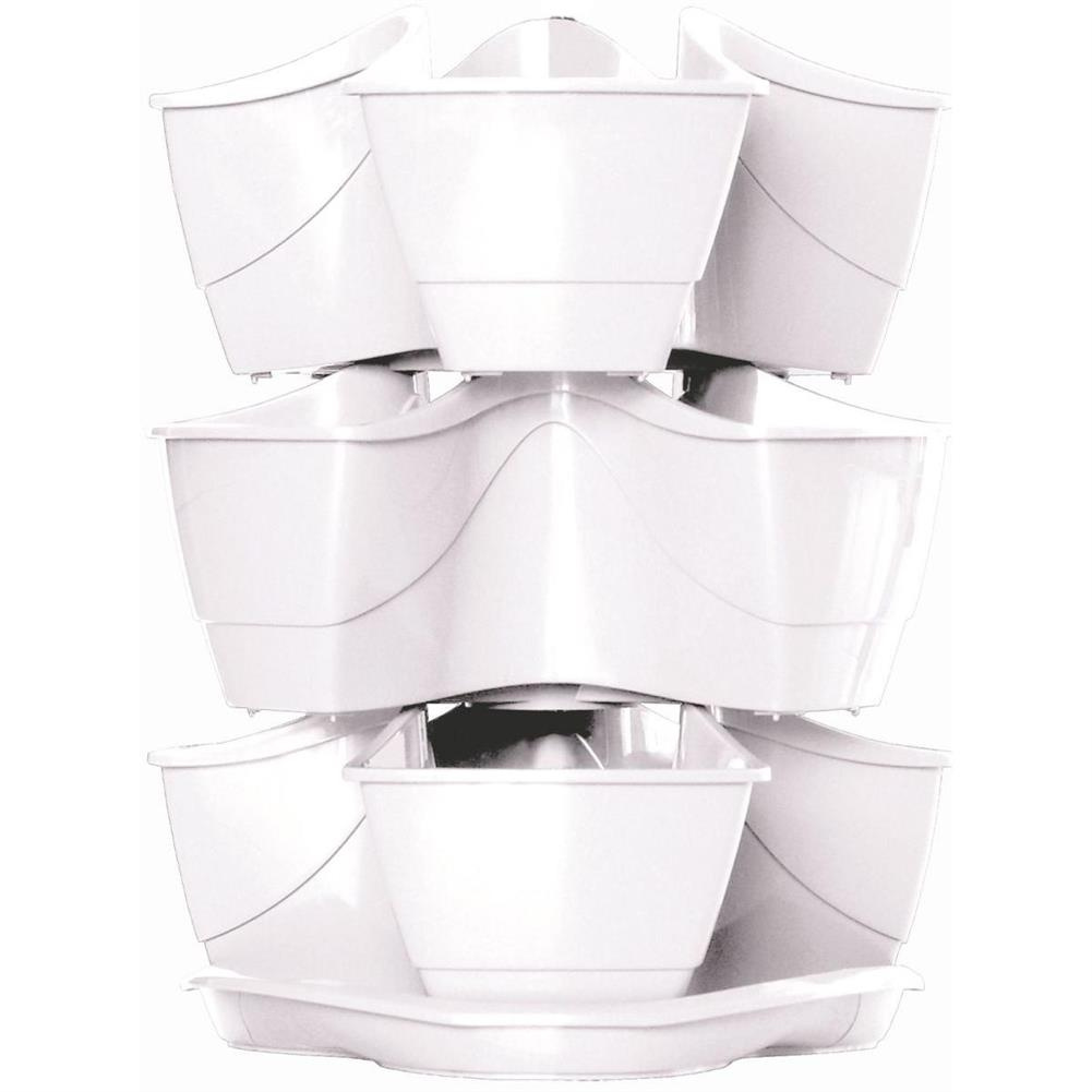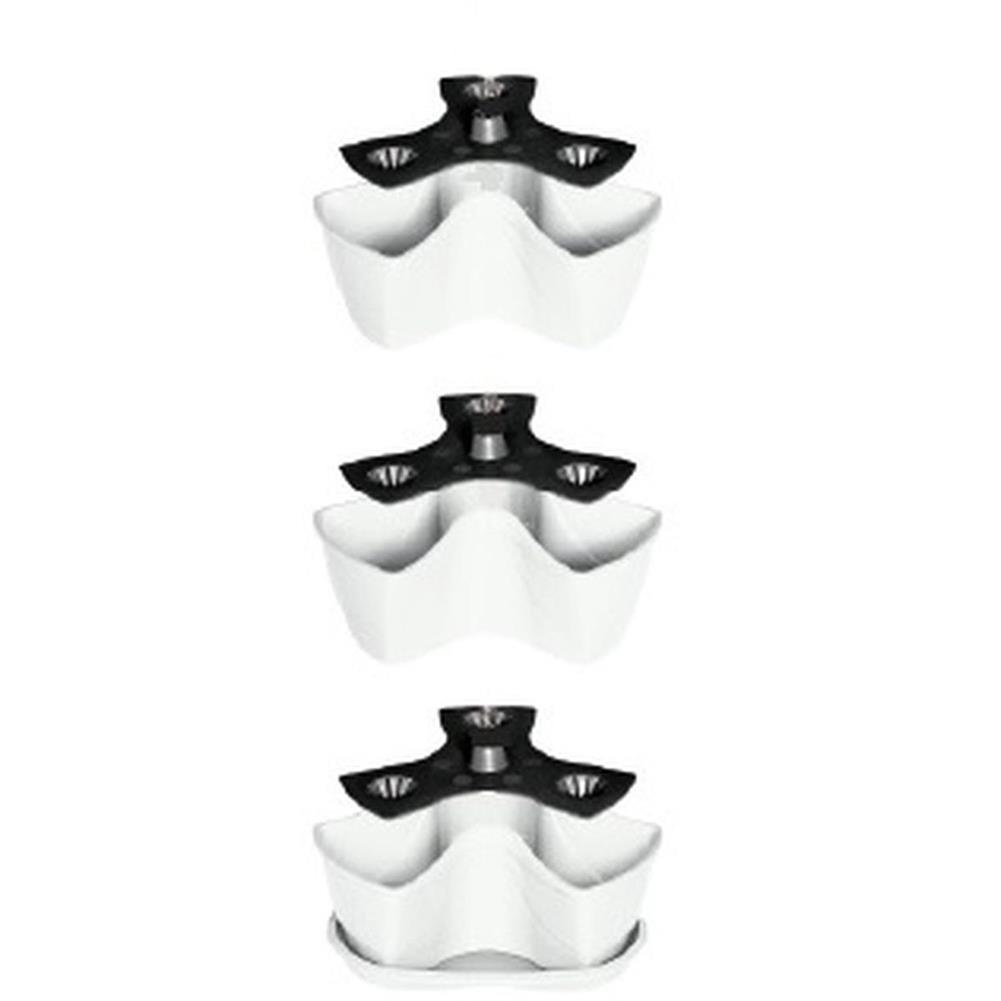 - Zestaw składa się z 7 części: 3 doniczki, 1 podstawa, 3 wkładki drenażowe