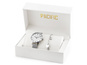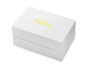 W komplecie eleganckie markowe pudełko w kolorze białym oraz bransoletka na rękę - idealne na prezent.