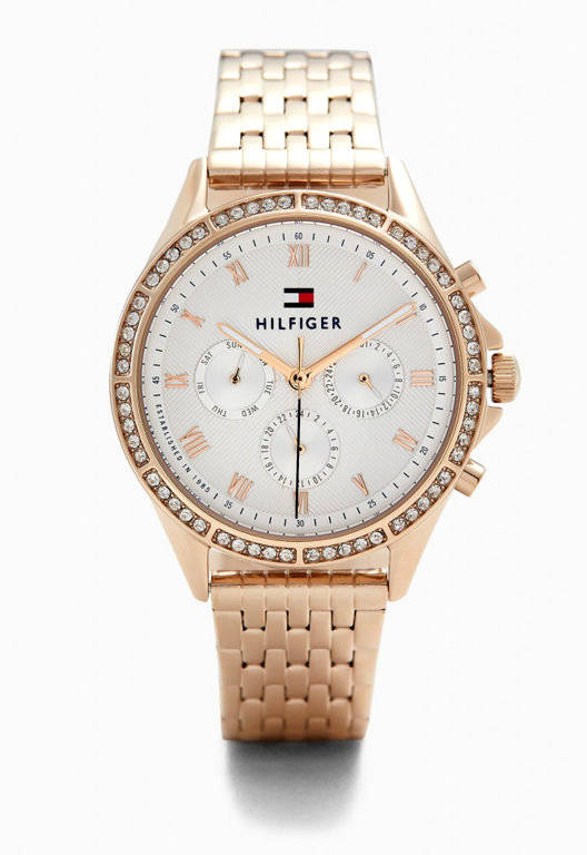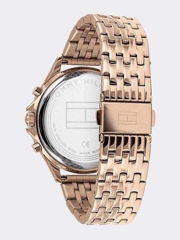 Zegarek Tommy Hilfiger 1782143 ARI to elegancki damski czasomierz zasilany niezawodnym kwarcowym mechanizmem. Koperta oraz bransoleta zostały wykonana ze stali szlachetnej, co gwarantuje jej wieloletnią odporność na zniszczenie. Całość uzupełnia biała i bardzo czytelna tarcza z rzymskim indeksem wyposażona została w funkcję multidatownika..