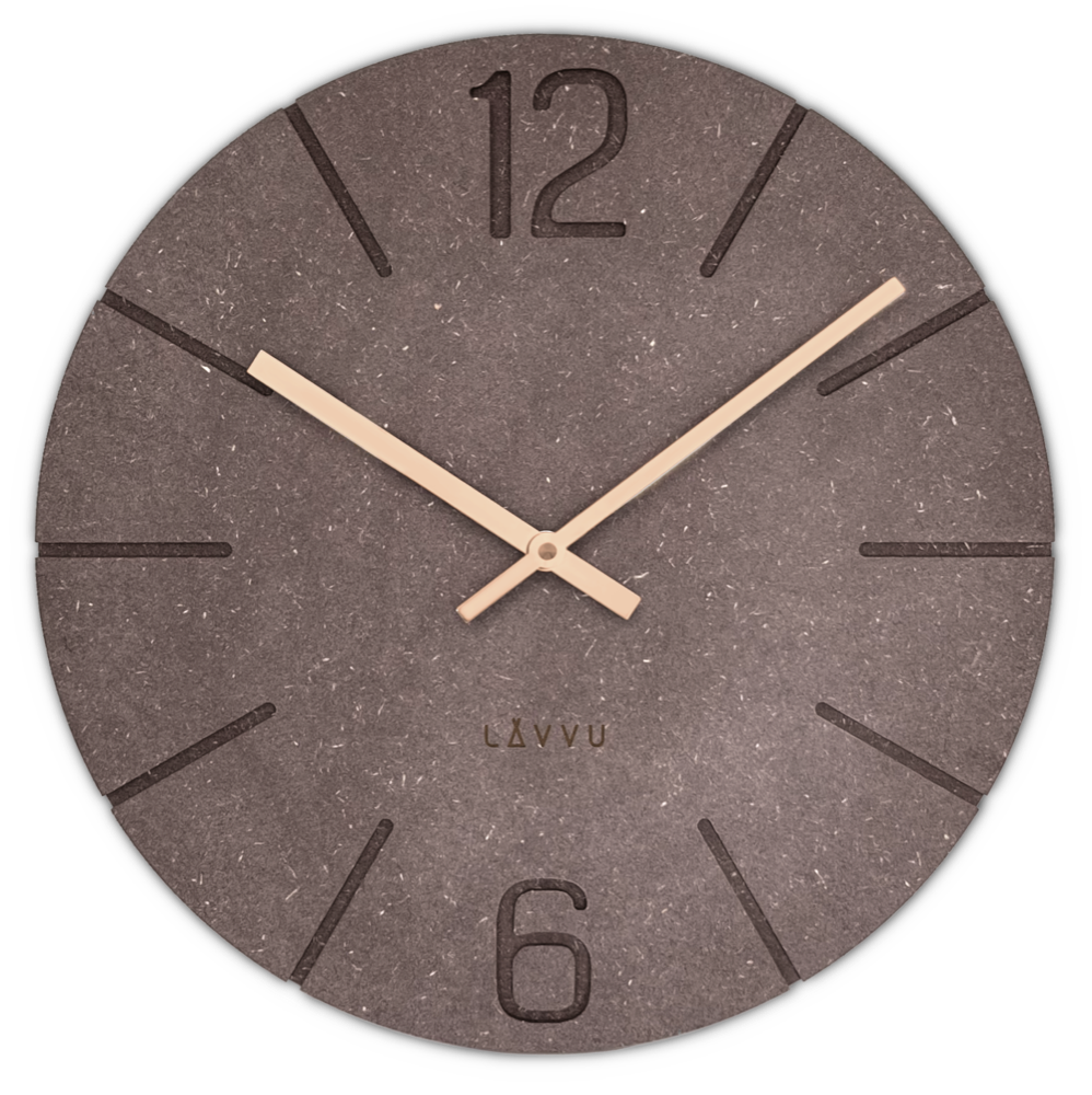 Nowoczesny zegar LAVVU Natur o średnicy 34 cm został wykonany z szacunkiem dla natury i w duchu zrównoważonego rozwoju. Prosty, ale pomysłowy projekt zegara wygląda lekko i przyjemnie, a piękny odcień koloru rozjaśni Twój salon i biuro.
