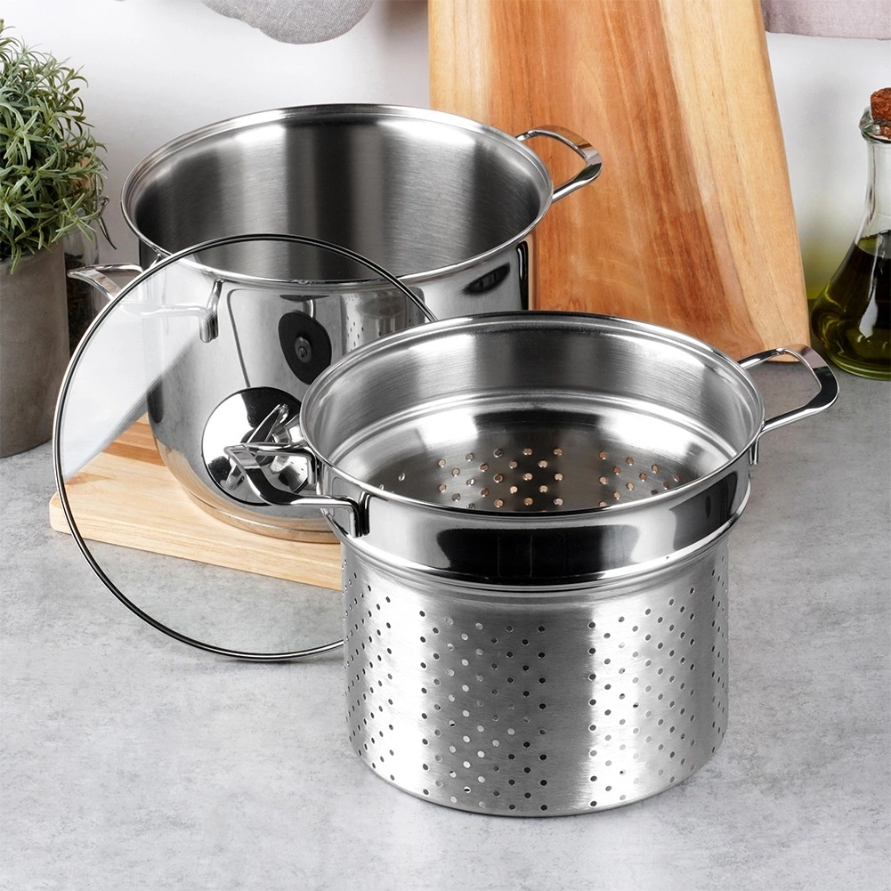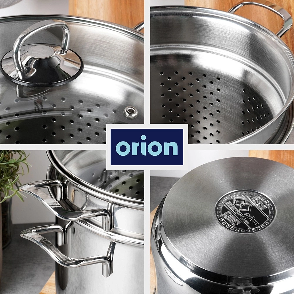 Solidny garnek z wkładem do gotowania na parze. Garnek możemy wykorzystać osobno lub z wkładem. Niezwykle praktyczny, przydatny w każdej kuchni również profesjonalnej. Garnek idealnie sprawdzi się do gotowania makaronu, warzyw, dań na parze, ale również do klasycznego gotowania. Posiada najwyższej jakości dno, które pozwoli nam na gotowanie z małą ilością tłuszczu. Przy użyciu tego garnka zachowamy witaminy oraz minerały podczas gotowania. Oryginalny produkt czeskiej marki Orion. Wyprodukowano zgodnie z europejskimi standardami.