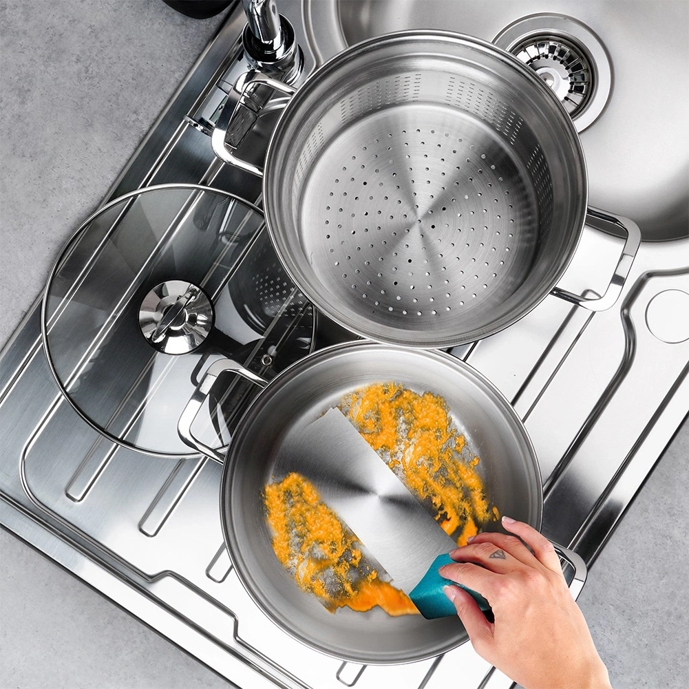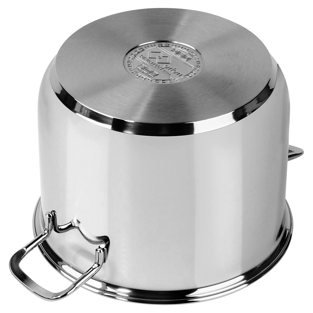 - SOLIDNY - Wykonany z wysokiej jakości stali nierdzewnej polerowanej na wysoki połysk. Garnek jest ciężki i masywny.