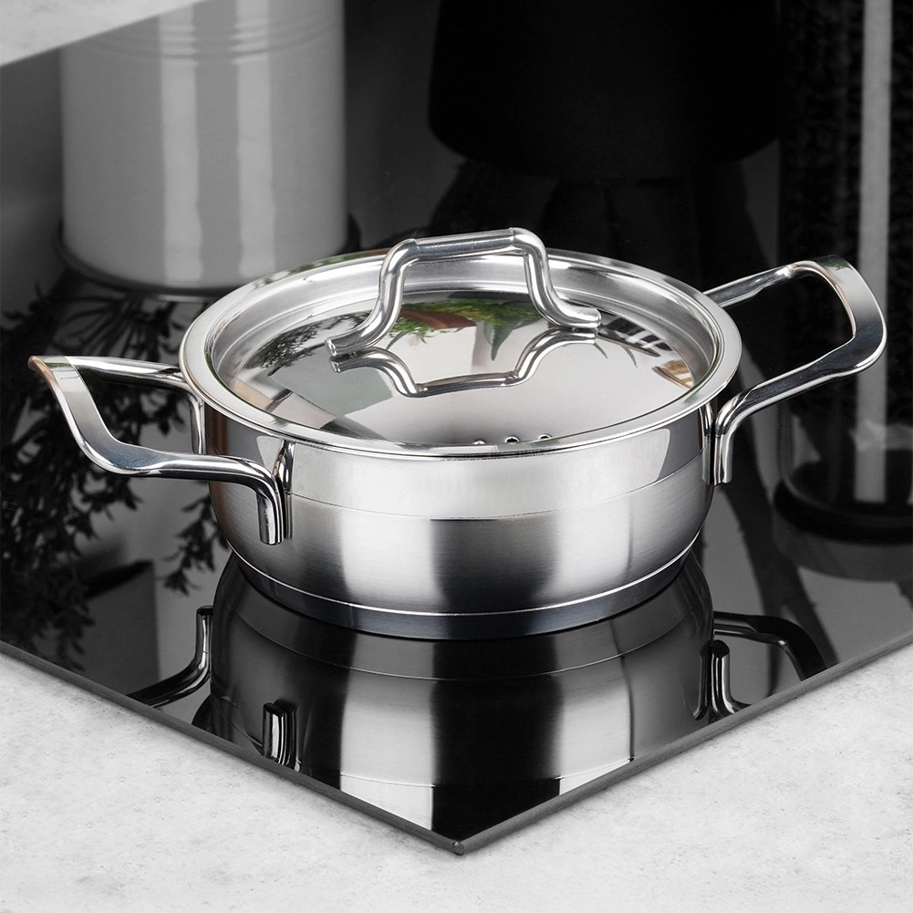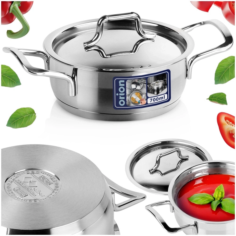 - Najwyższej jakości stal szlachetna 18/10 - matowa z dodatkowym pasem połysku w górnej zewnętrznej części naczynia.