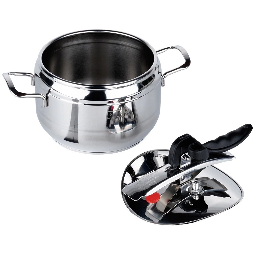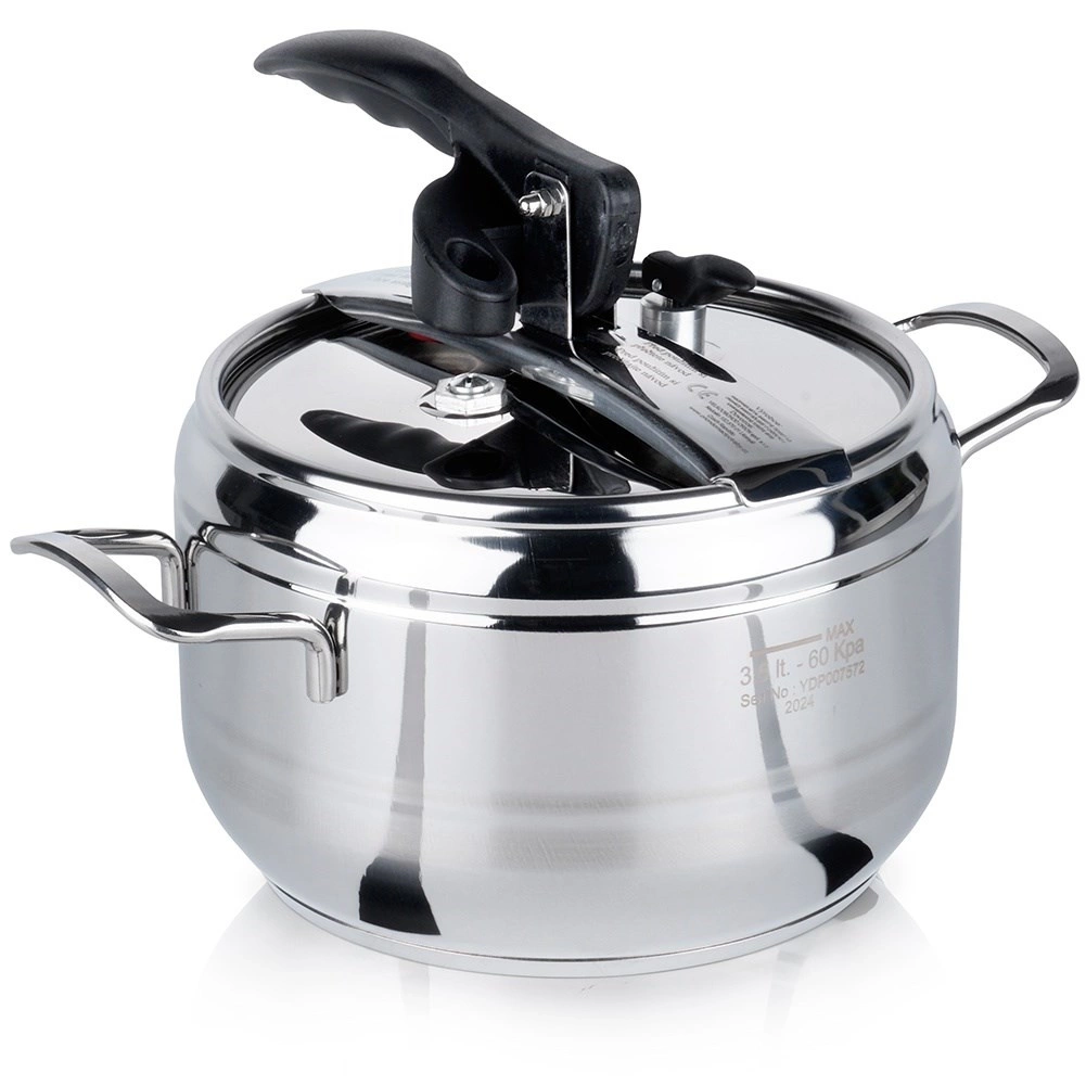 - SOLIDNY - Szybkowar wykonany z wysokiej jakości stali nierdzewnej. Posiada 3-warstwowe dno. Dzięki specjalnemu systemowi zamykania uszczelka nie zużywa się szybko.