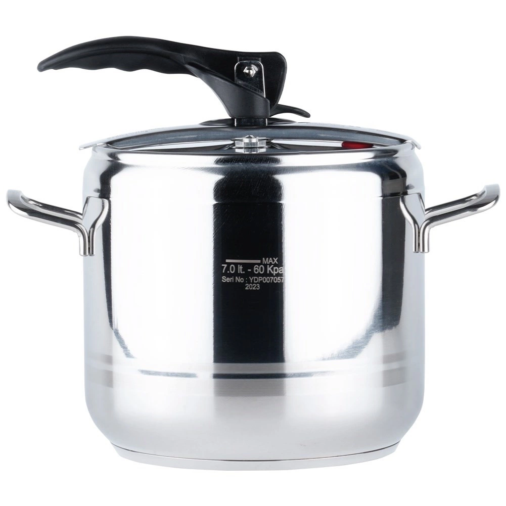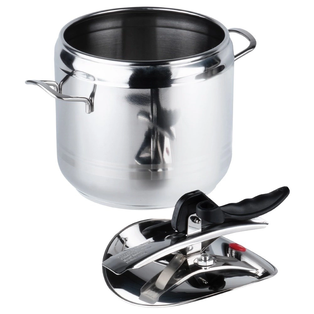 - SOLIDNY - Szybkowar wykonany z wysokiej jakości stali nierdzewnej. Posiada 3-warstwowe dno. Dzięki specjalnemu systemowi zamykania uszczelka nie zużywa się szybko.