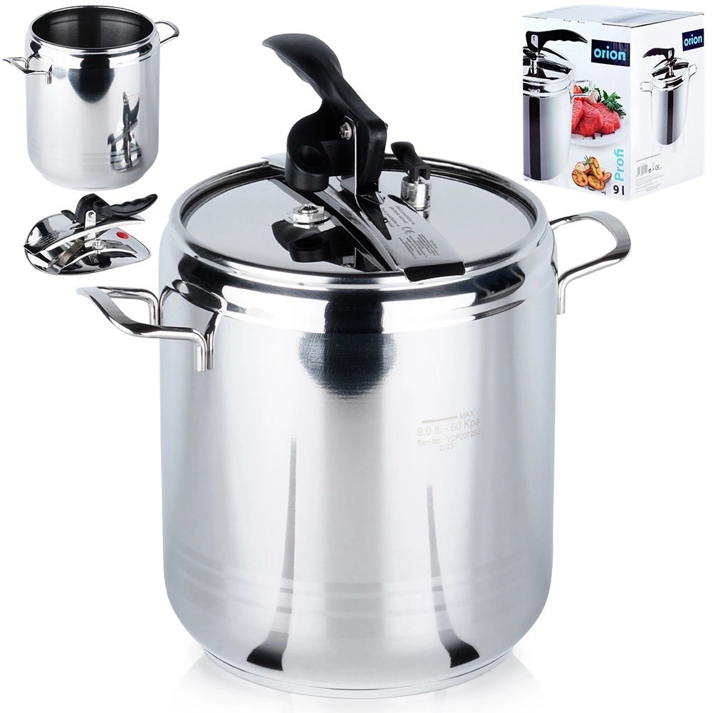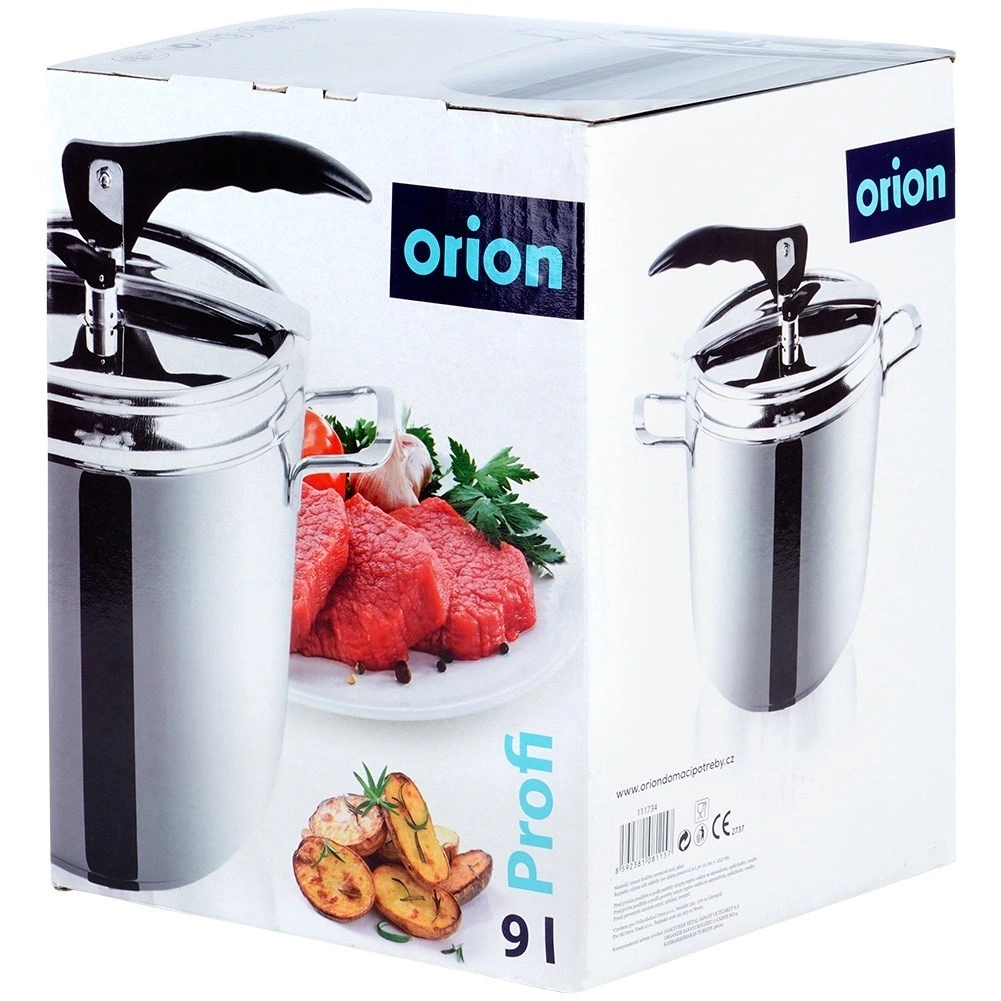 Szybkowar o pojemności 9 litrów. Podana pojemność szybkowaru dotyczy pojemności całkowitej naczynia. Pojemność szybkowarowa to 2/3 pojemności całkowitej. Z jego pomocą będziemy mogli przygotować pyszne potrawy w znacznie krótszym czasie. Szybkowar jest łatwy w obsłudze i bezpieczny. Oryginalny produkt czeskiej marki Orion. Wyprodukowano zgodnie z europejskimi standardami.