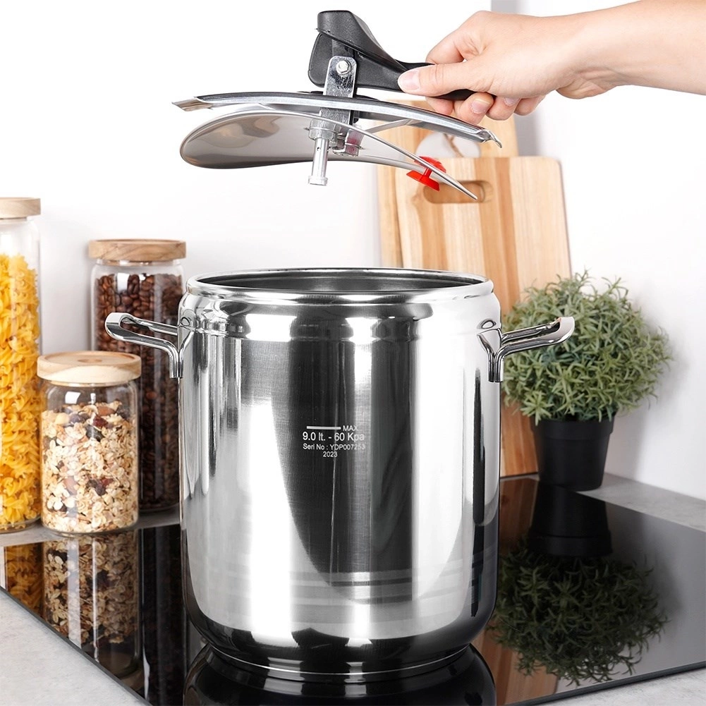 • SOLIDNY - Szybkowar wykonany z wysokiej jakości stali nierdzewnej. Posiada 3-warstwowe dno. Dzięki specjalnemu systemowi zamykania uszczelka nie zużywa się szybko.