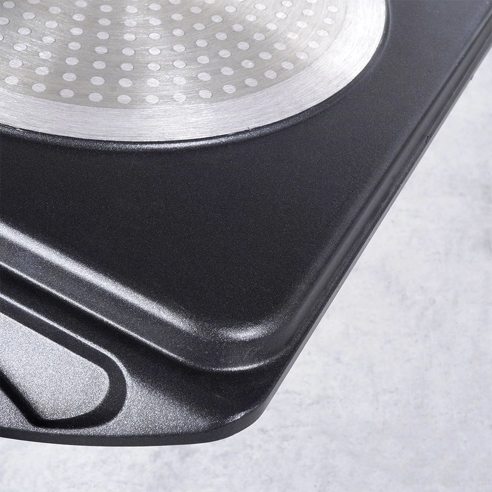 - Powierzchnia nieprzywierająca umożliwia przygotowywanie zdrowych i smacznych posiłków z minimalną ilością tłuszczu.