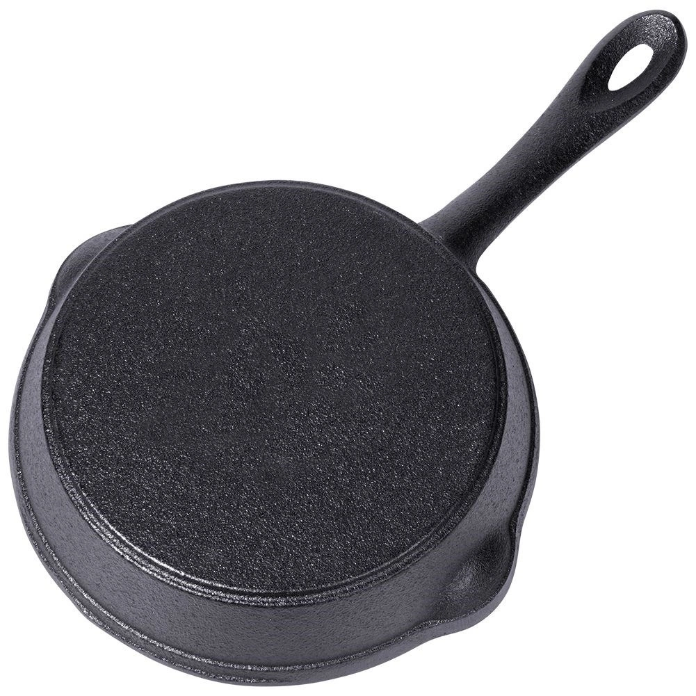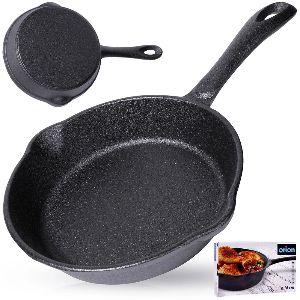 • ŻELIWNA - Patelnia wykonana jest z odlewu żeliwa. Pozwoli Ci przygotować pyszne dania z mięsa, warzyw, ziemniaków. Patelnia ma średnicę 16 cm i wysokość 3,5 cm. Wysokość patelni z uchwytem wynosi 4,5 cm.