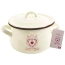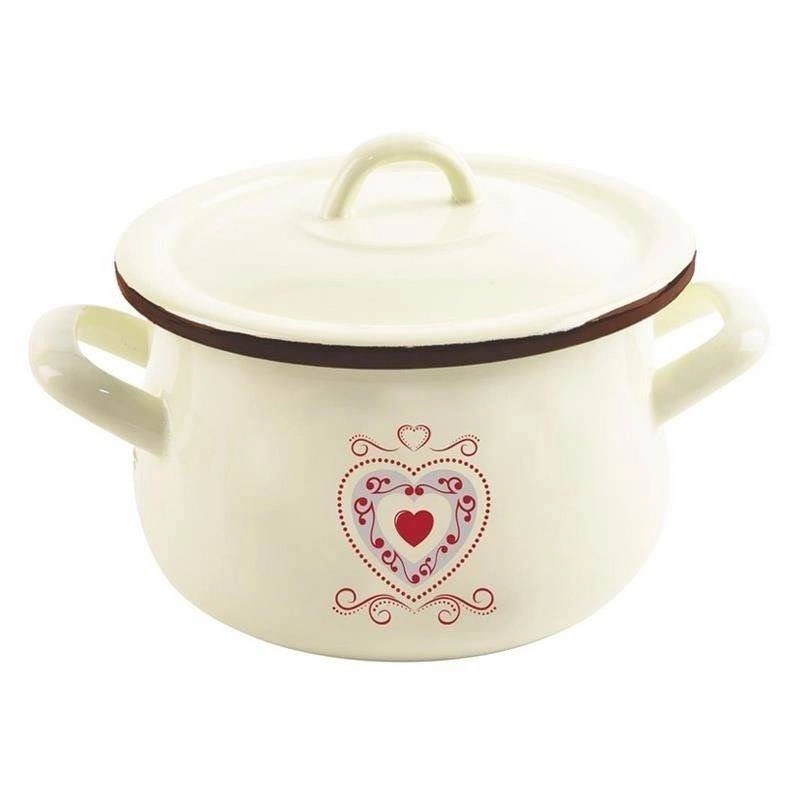 - Poręczny garnek z uchwytami oraz pokrywką, wykonany ze stali emaliowanej.