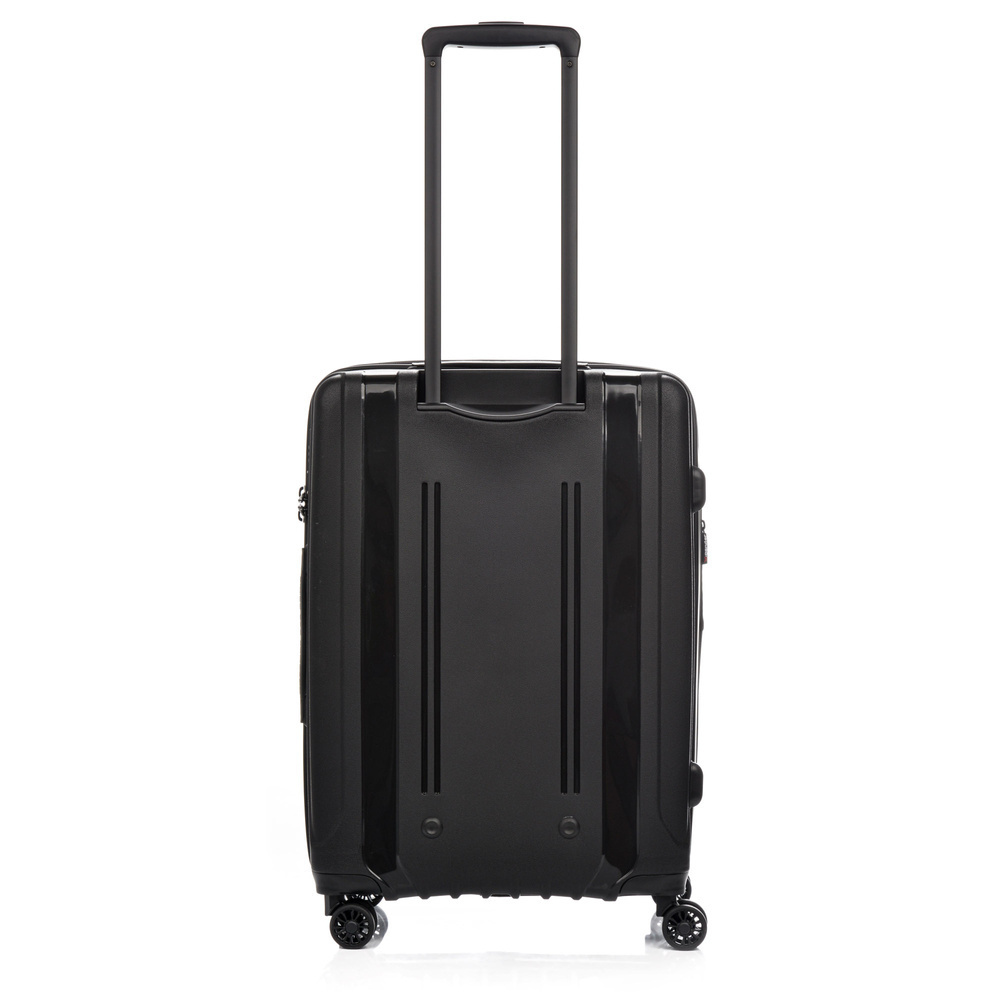 Kolekcja została stworzona z odpornego na uszkodzenia, wysokiej jakości polipropylenu. Materiał jest lekki i elastyczny, co znacznie wypływa na komfort użytkowania. Na froncie walizki znajduje się oryginalny napis z nazwą marki.