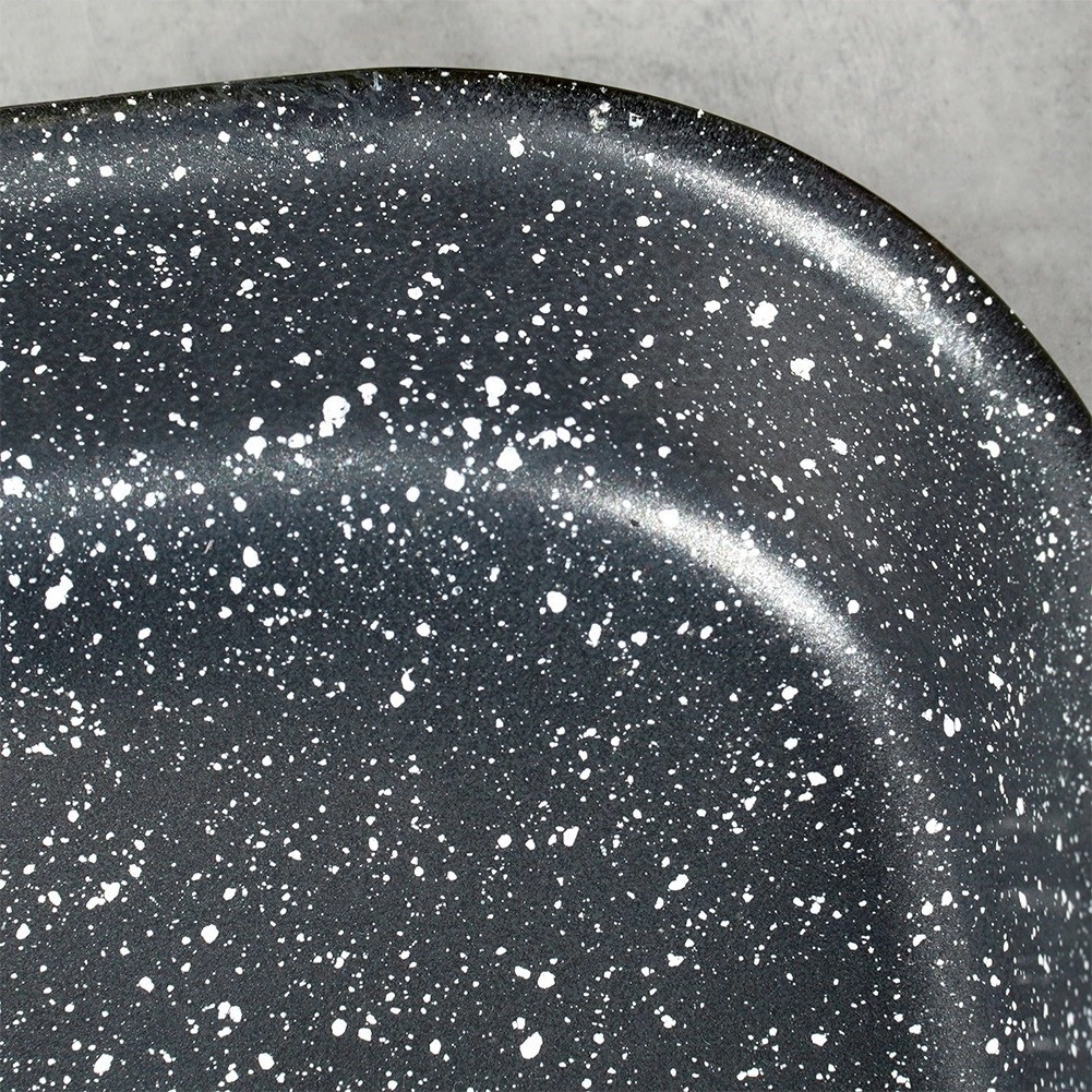 - Wykonana ze stali emaliowanej, wewnątrz pokryta powłoką granitową.