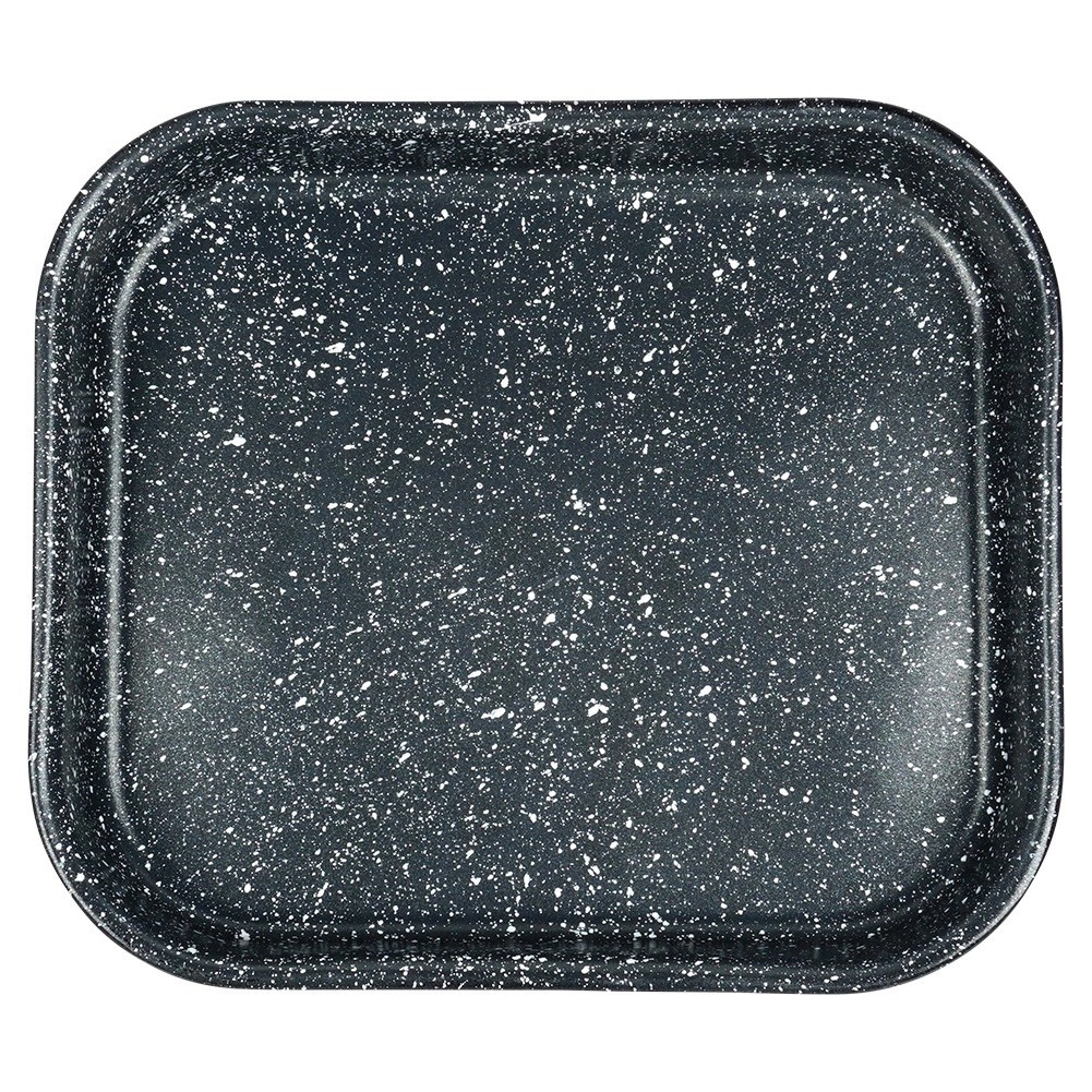 - Posiada powłokę granitową, która zapobiega przywieraniu, nawet przy minimalnej ilości tłuszczu.