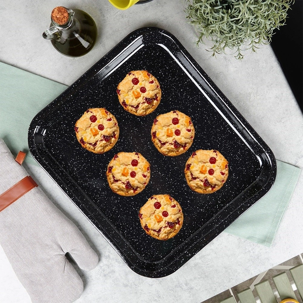 - Brytfanna wykonana ze stali emaliowanej o wymiarach 41,5 x 37 x 2,5 cm.